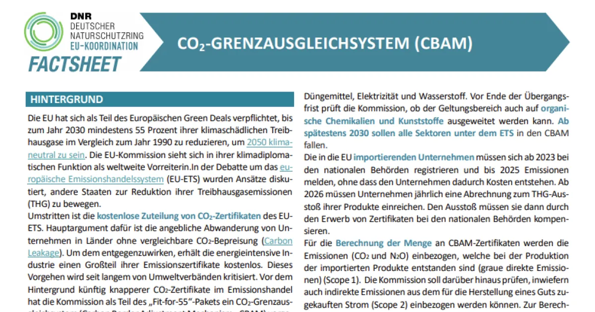 Aktualisiertes Factsheet: CO₂-Grenzausgleichsystem (CBAM)