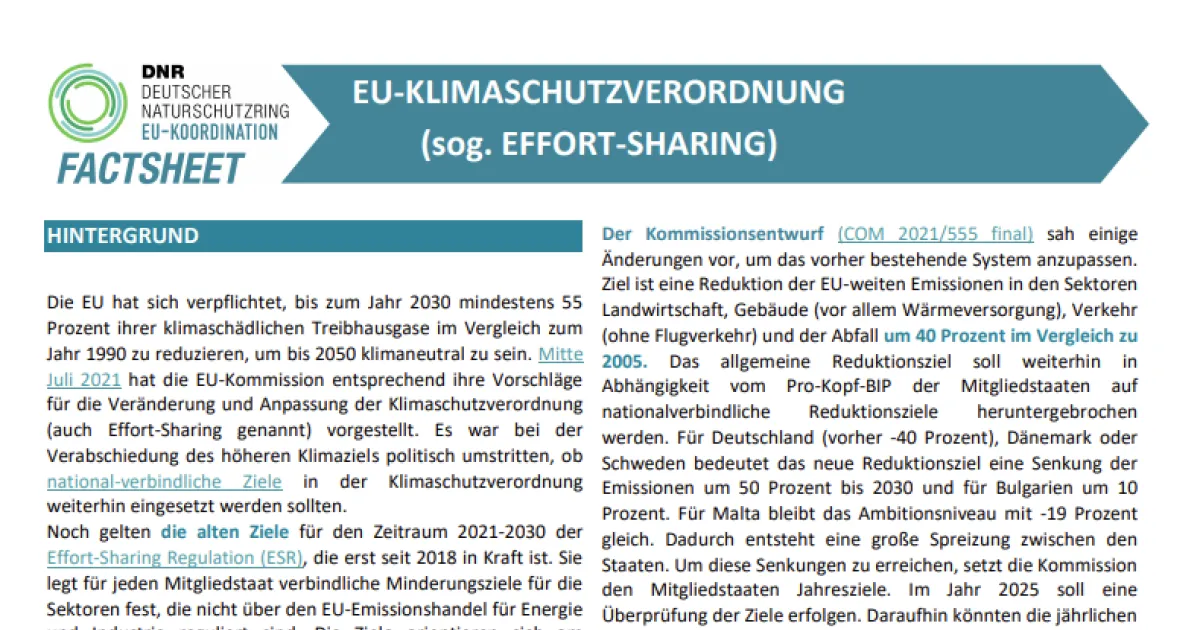 Aktualisiertes Factsheet: Klimaschutzverordnung (Effort Sharing)